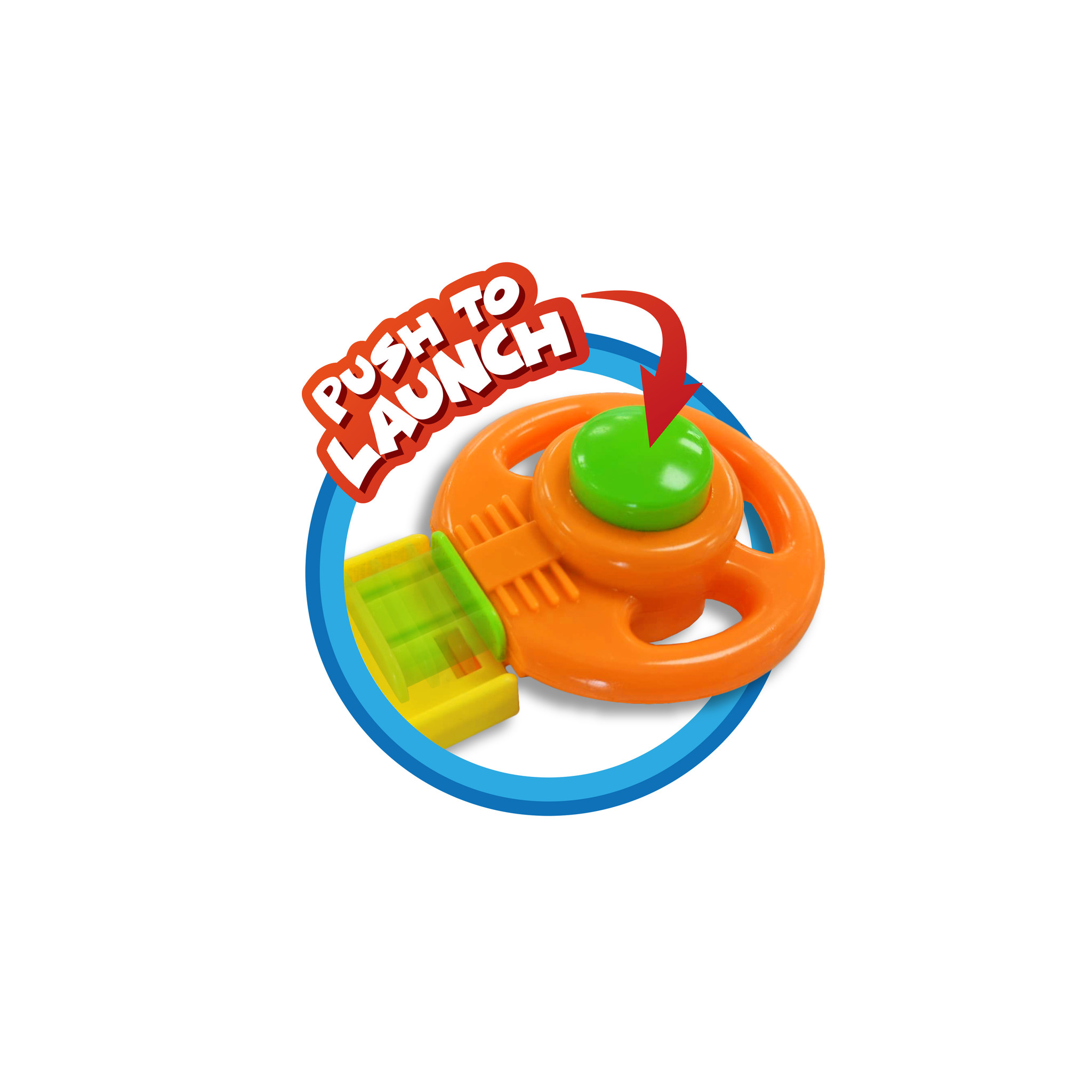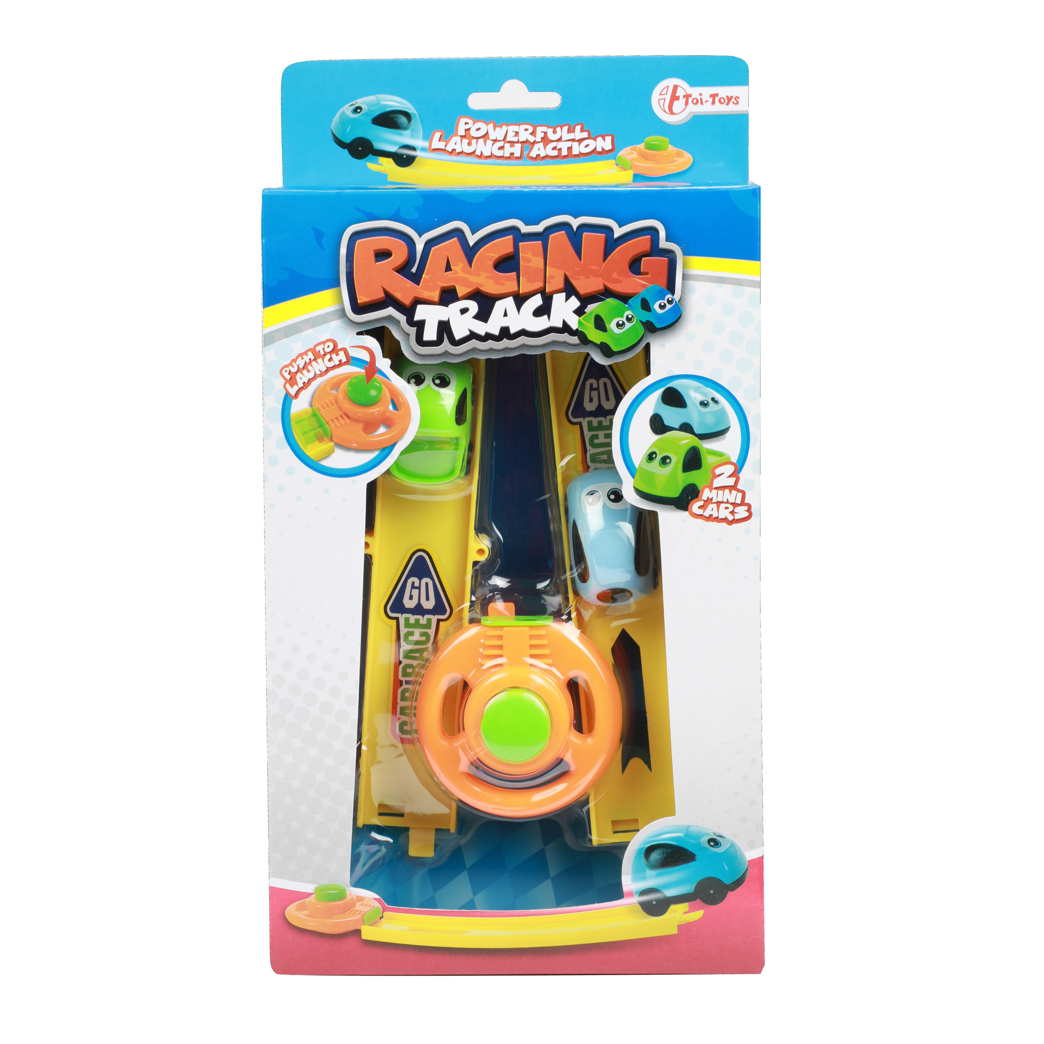 Zet het autootje op de baan, druk op de knop en schiet de auto weg! Incl. 2 auto’s.