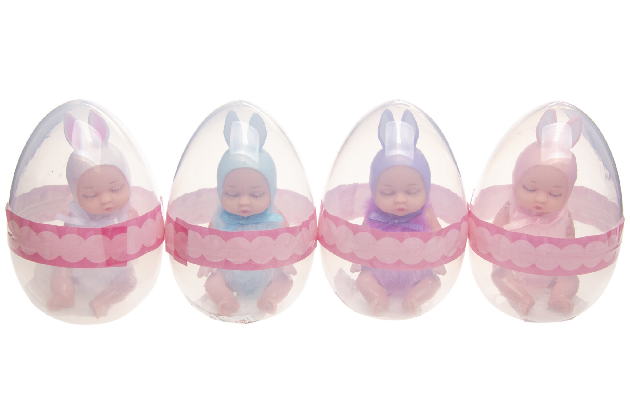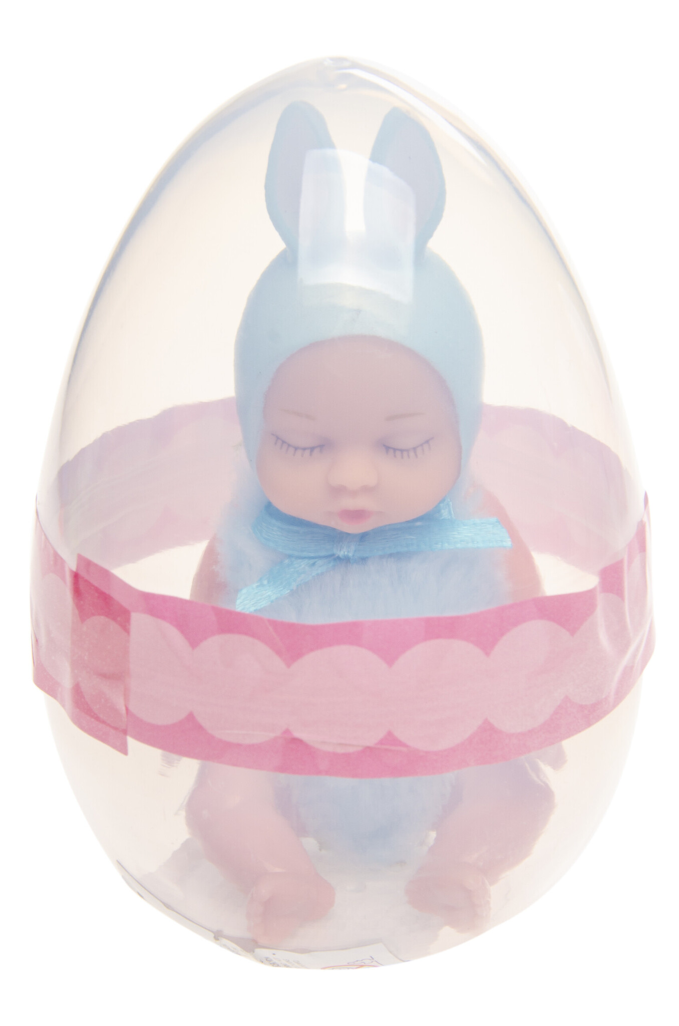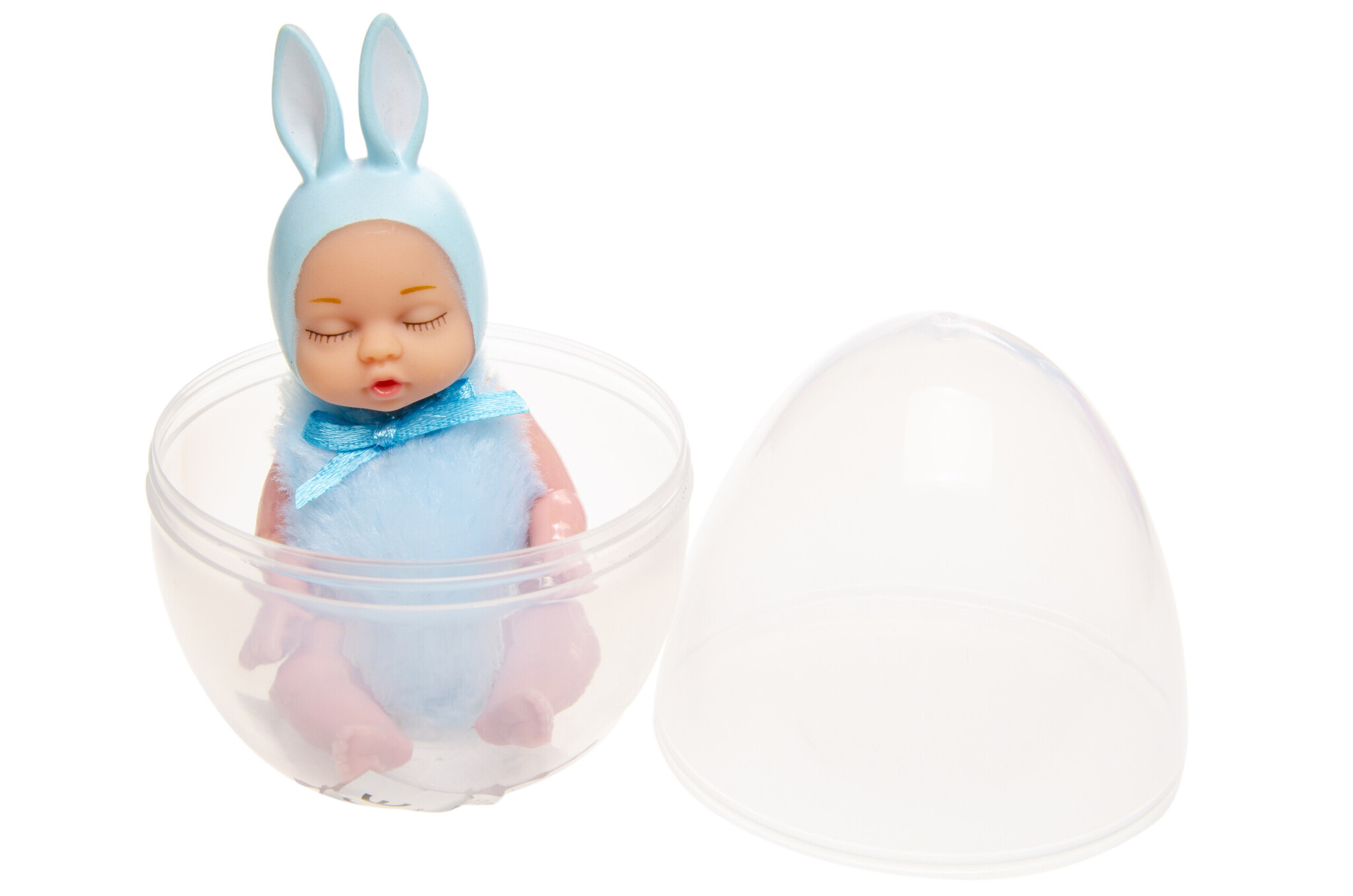 Schattig klein poppetje met dierenmuts in ei, In diverse kleuren worden assorti geleverd.