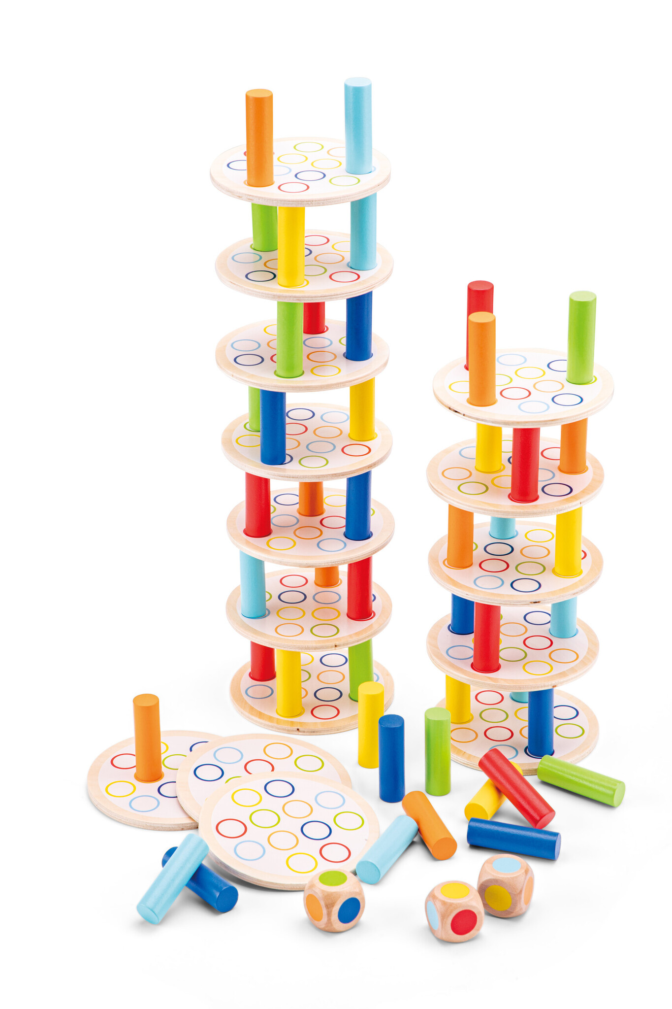 Test je vaardigheden en geduld, en misschien een beetje geluk, met dit houten evenwichts- torenspel. Er zijn 3 verschillende manieren om dit spel te spelen. Je vindt deze in de bijgeleverde spelregels.