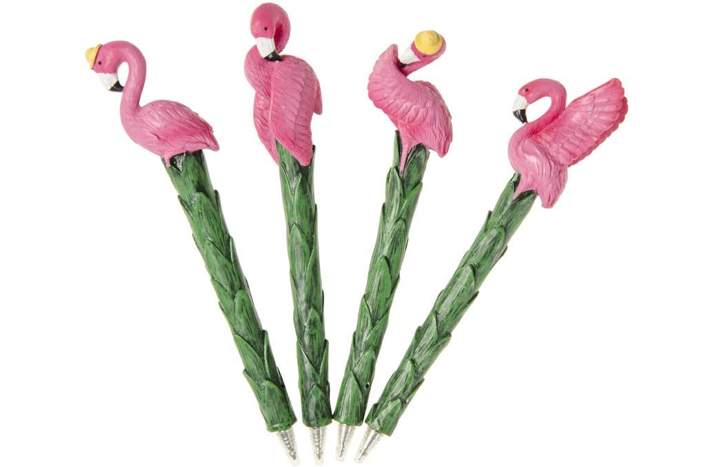 De flamingo pen is uitgevoerd in diverse soorten en wordt assorti geleverd.
