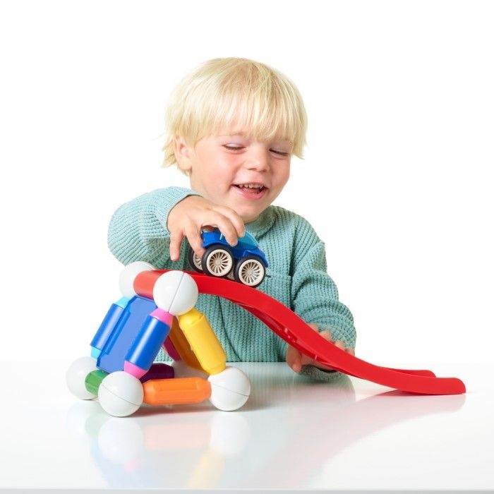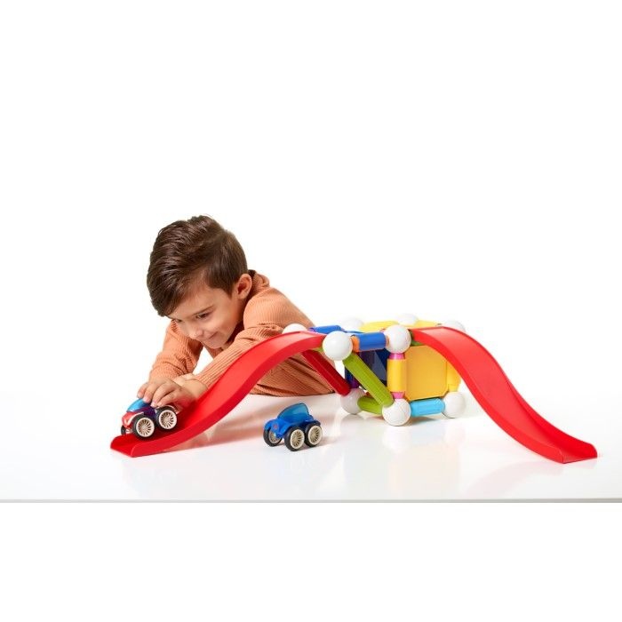 Oudere kinderen beleven maximaal speelplezier bij het bouwen van torens, bruggen en andere grote constructies. Deze basisdoos bevat 46 elementen waaronder 2 grote glijbanen en 2 auto’s.