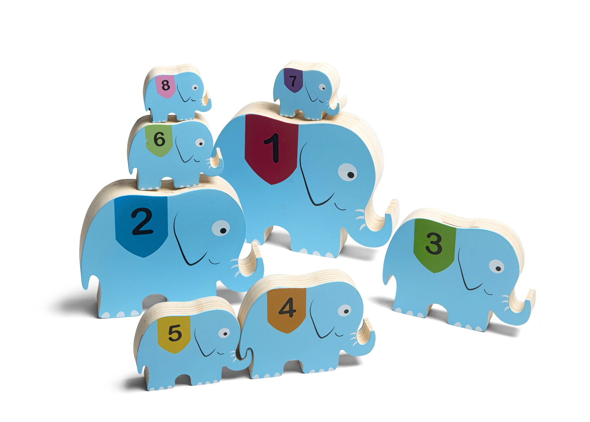 Leer cijfers op volgorde zetten, herken verschillende kleuren en bouw hoge torens met deze vrolijke, robuuste, houten circusolifanten. Welke acrobatische trucjes kun jij uithalen met deze mooie dieren?