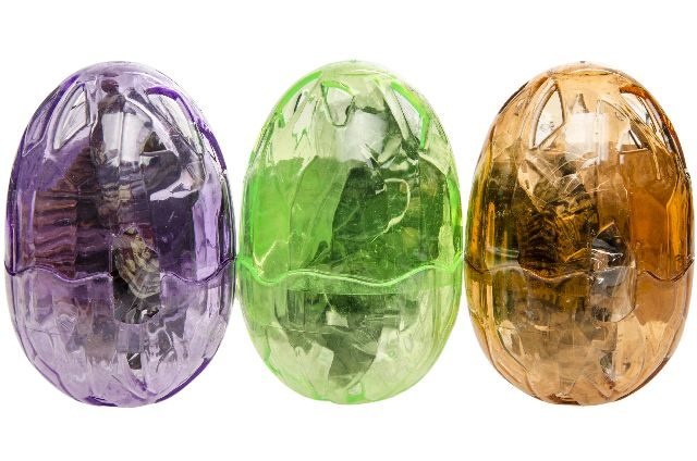 De eieren worden assorti kleur en dino figuren geleverd.