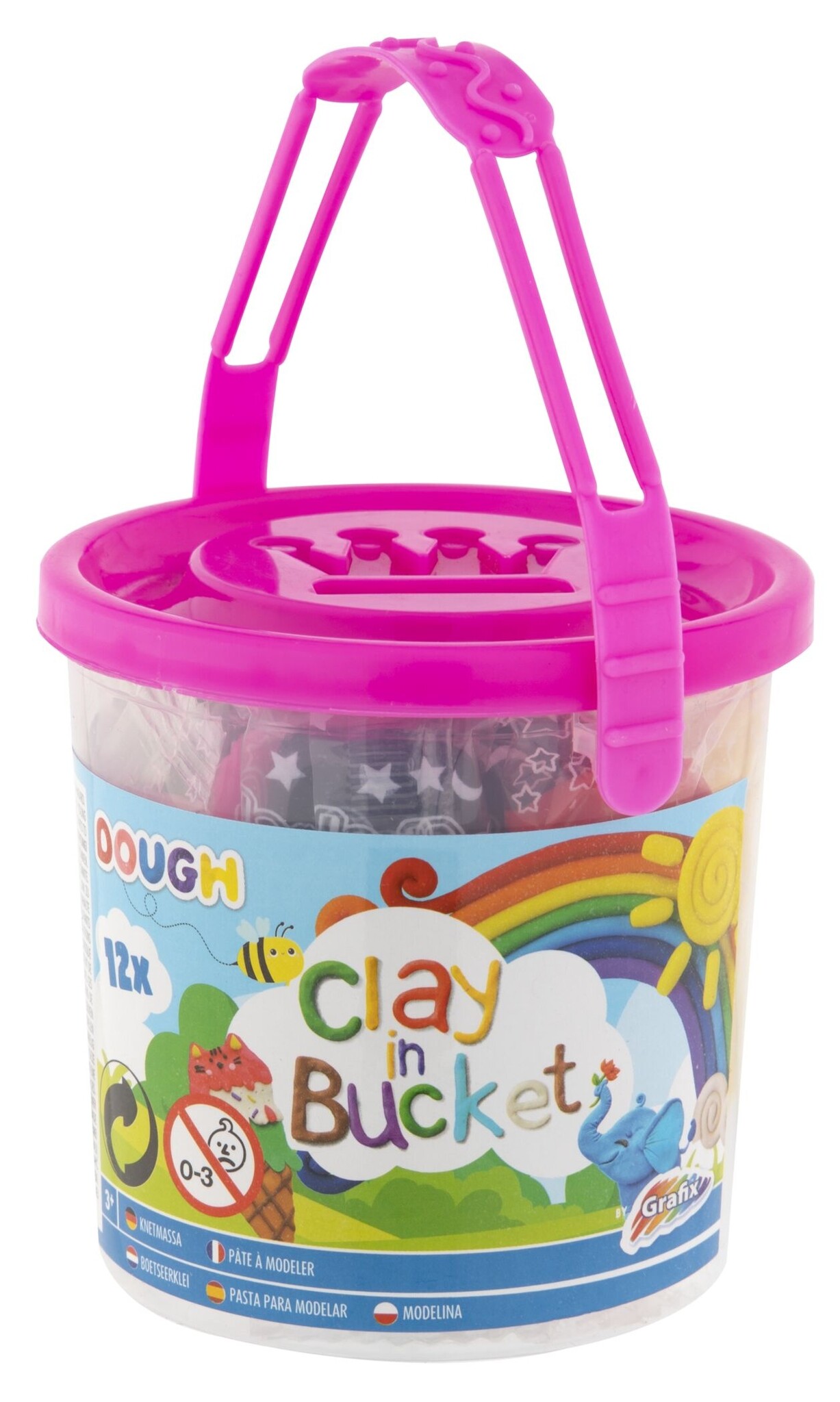 Laat de creativiteit stromen met dit vrolijke klei emmertje boordevol kleur! Het emmertje bevat 12 verschillende kleuren klei, perfect om eindeloos te kneden, vormen en fantaseren. Afm 7 x 7 cm.