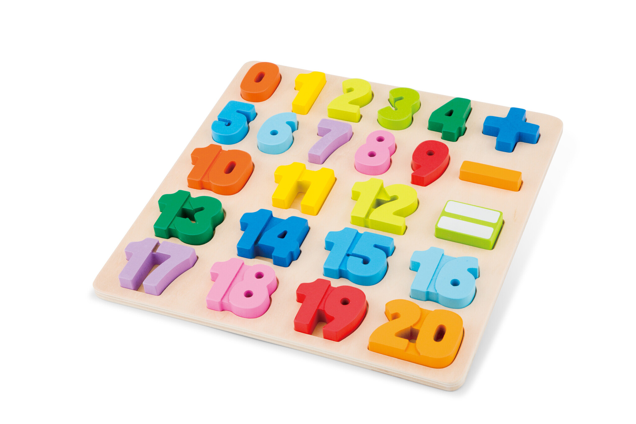 Ontworpen om de cognitieve vaardigheden en fijne motoriek van kinderen te bevorderen. Bevat een puzzelbord en 24 stevige kleurrijke getallen van 0 t/m 20. Afm. 298 x 298 x 10 mm.