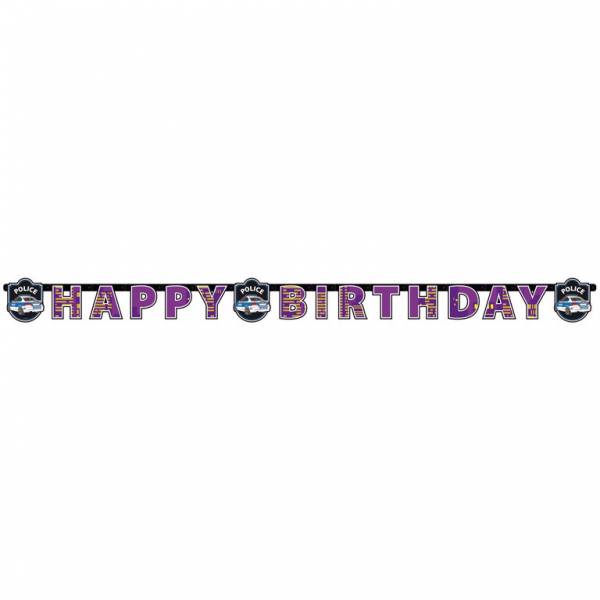 Politiefeestje? Daar hoort een passende feestversiering bij. Verras de jarige met deze verjaardag slingers met politie-auto's: Happy Birthday! Deze slinger is 1,8 meter lang