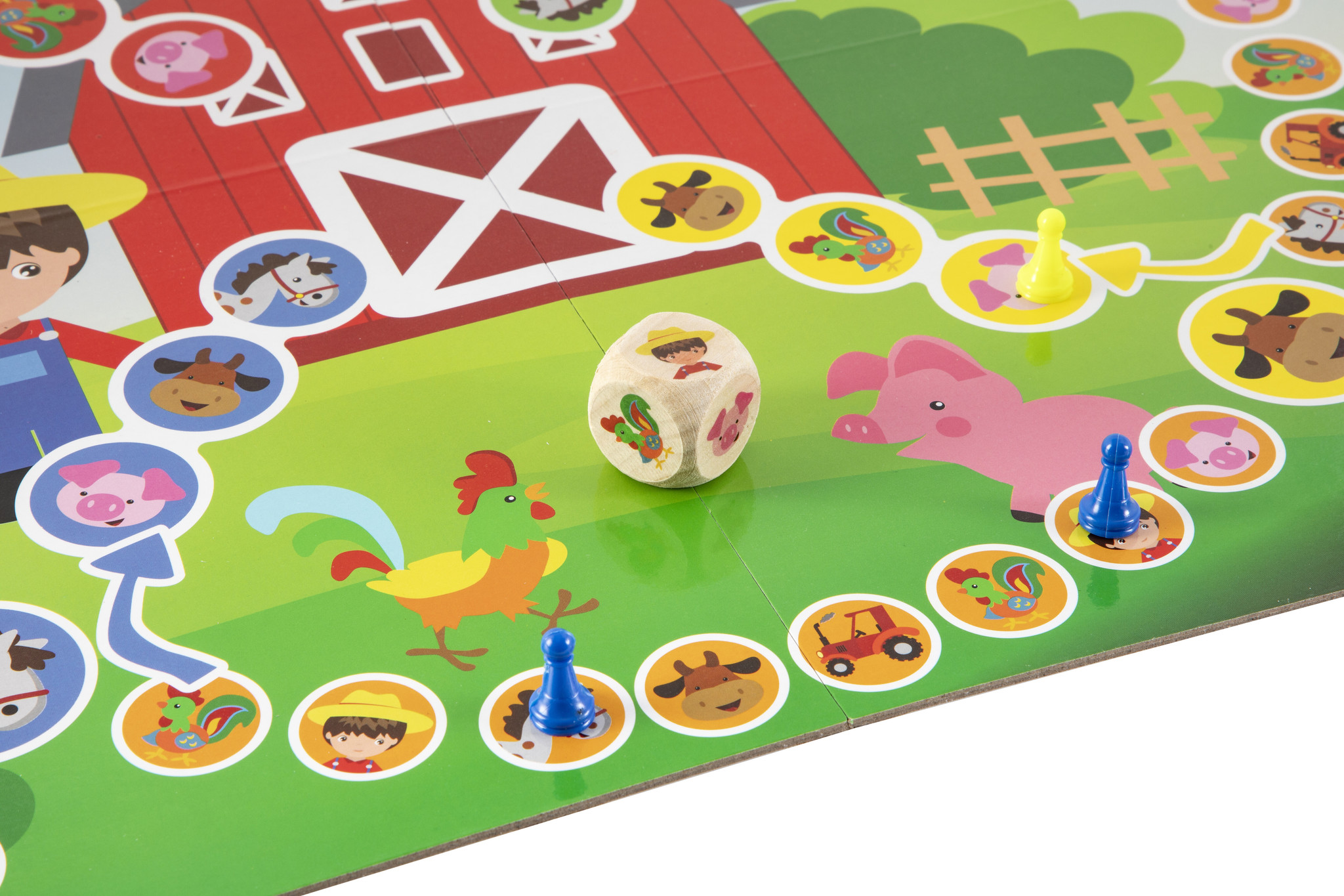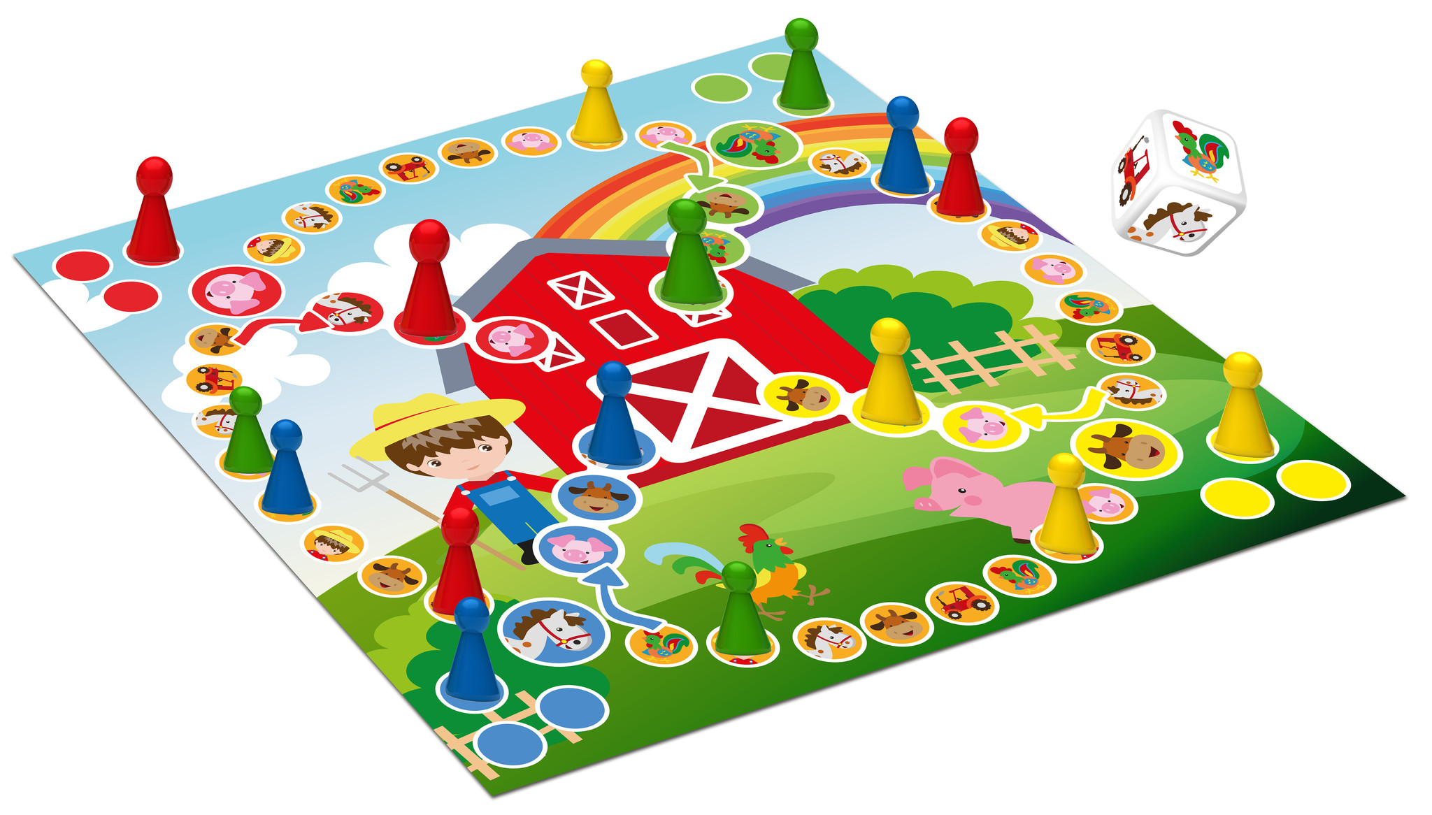 Wie weet er als eerste al zijn pionnetjes terug te brengen naar de boerderij?