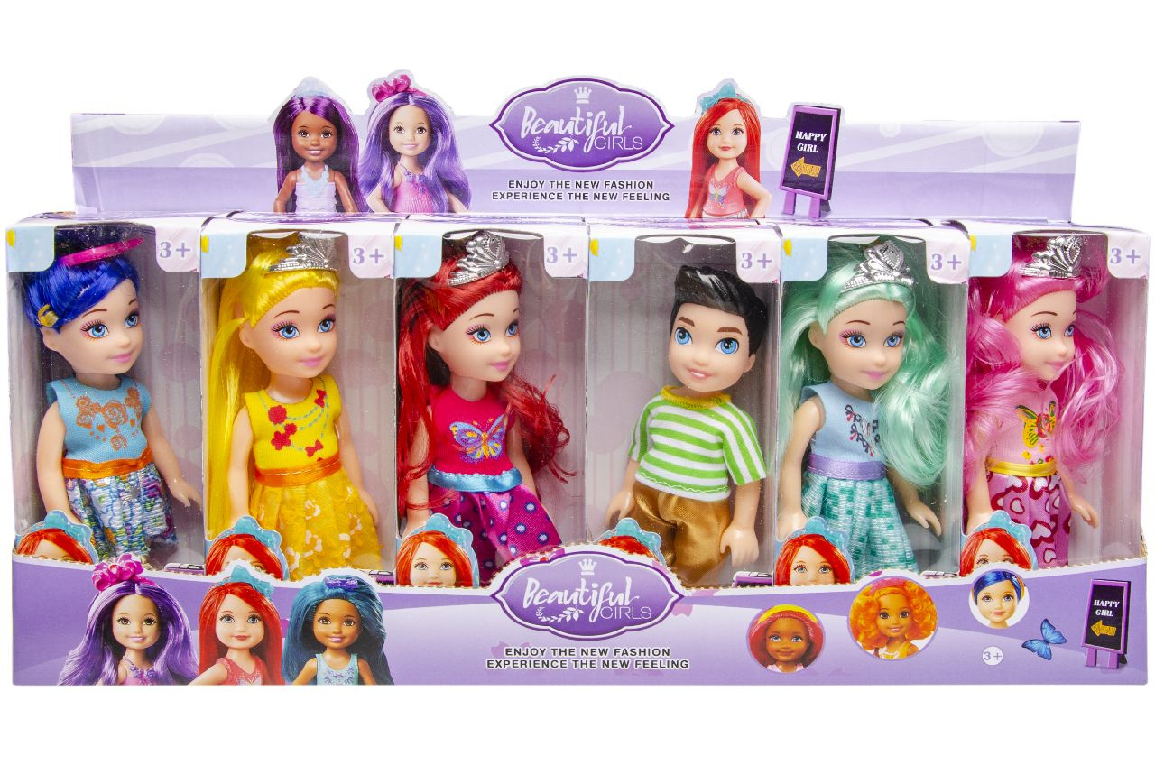 Schattig poppetje verpakt in geschenkdoosje. In diverse uitvoeringen meisjes en jongen, worden assorti modellen geleverd. Afm. ca. 15 cm.