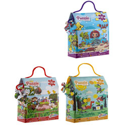 Leuke kleine puzzel bestaande uit 30 stukjes. Totale afmeting van de puzzel is 29 x 18 cm. Afmeting per stukje: 6 x 4,5 cm. Nog in voorraad: 3 x dino, 3 x zeemeermin, 6 x boerderij.