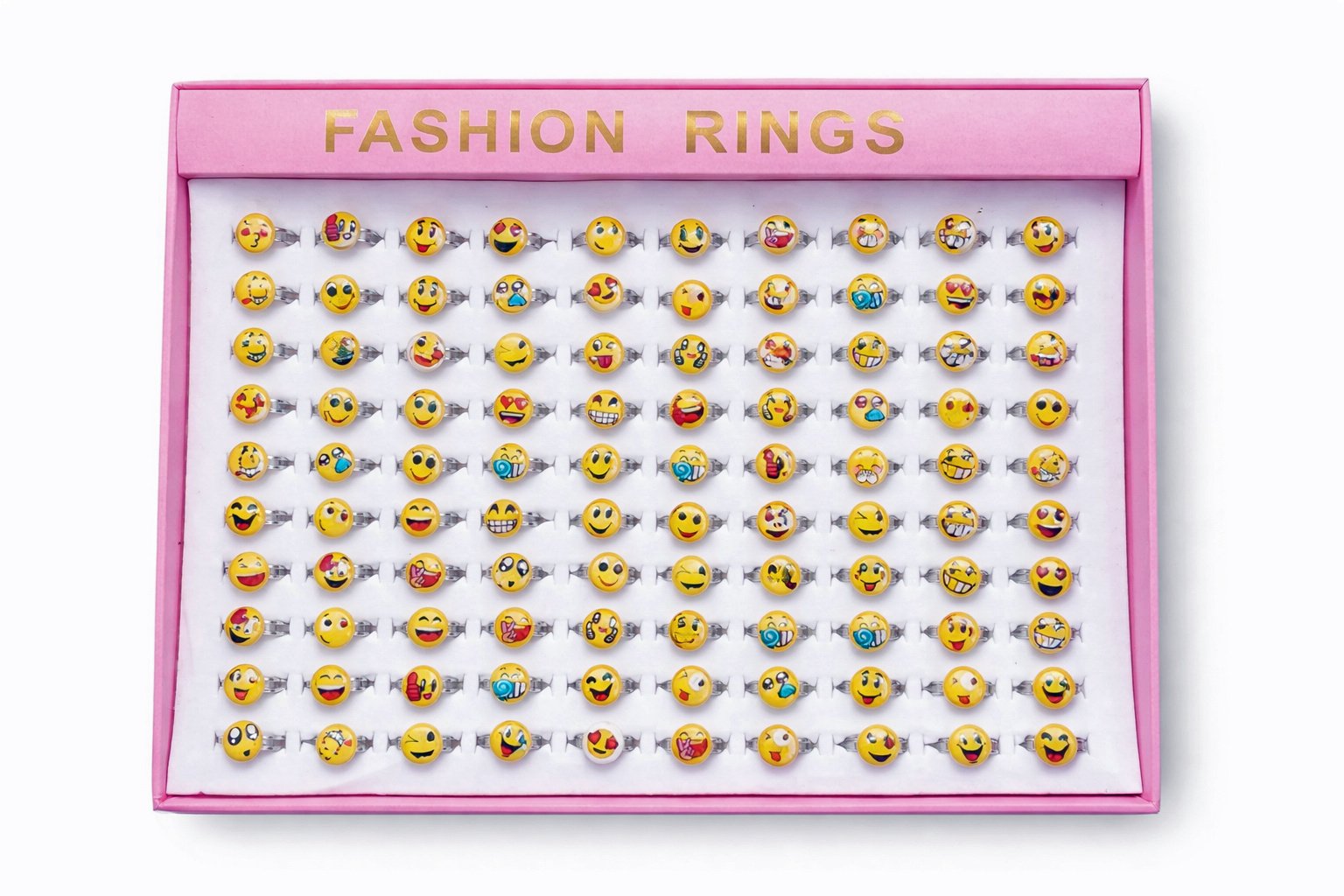 Schattige verstelbare ringetjes met vrolijke emotie-gezichtjes.