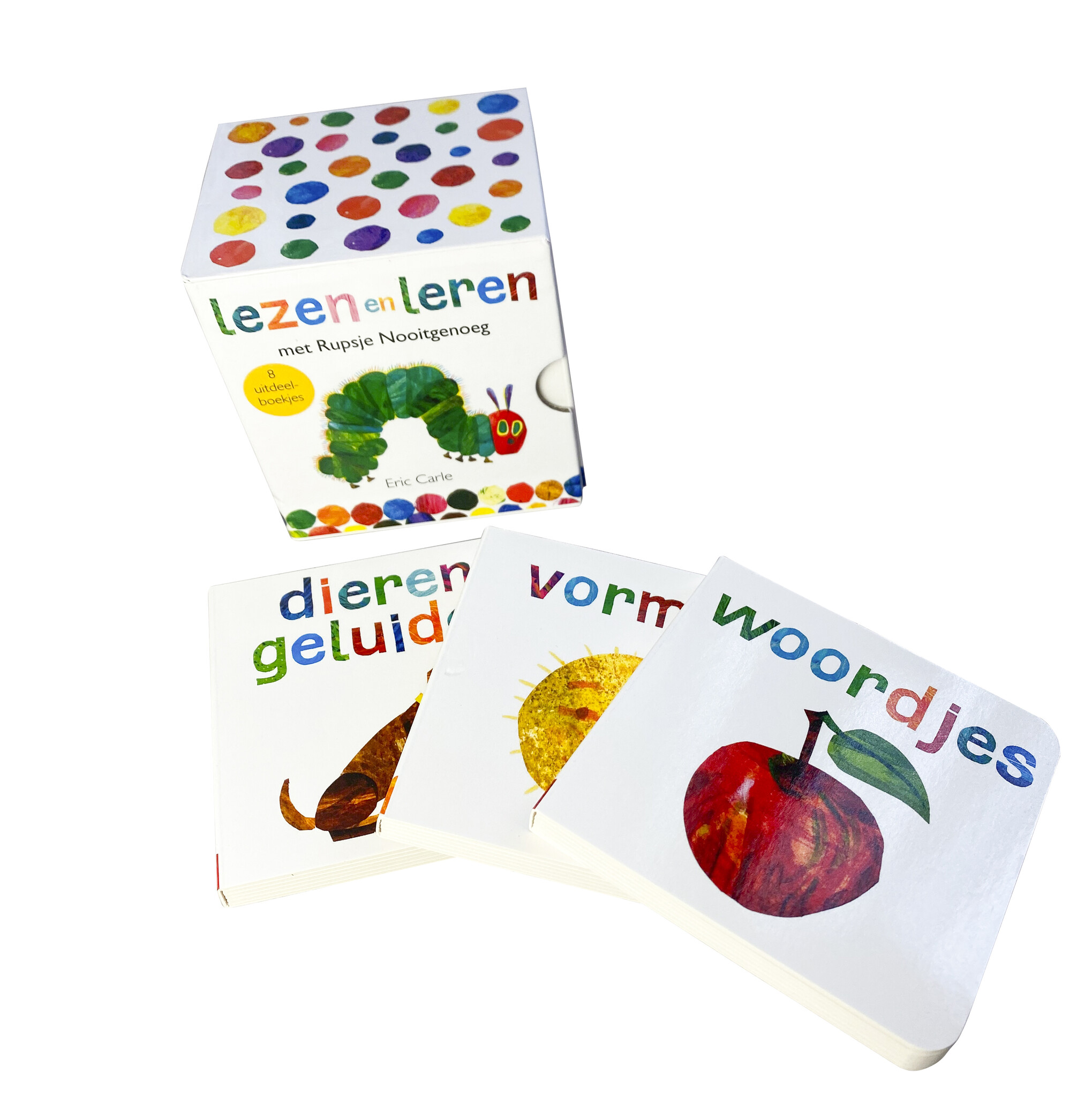 Met dit kleine uitdeelboekje maken kinderen spelenderwijs kennis met kleuren, cijfers, vormen, tegenstellingen, eerste woordjes, dierengeluiden, dierenhuizen en dingen om te eten. Dit alles aan de hand van de prachtige tekeningen van Eric Carle.