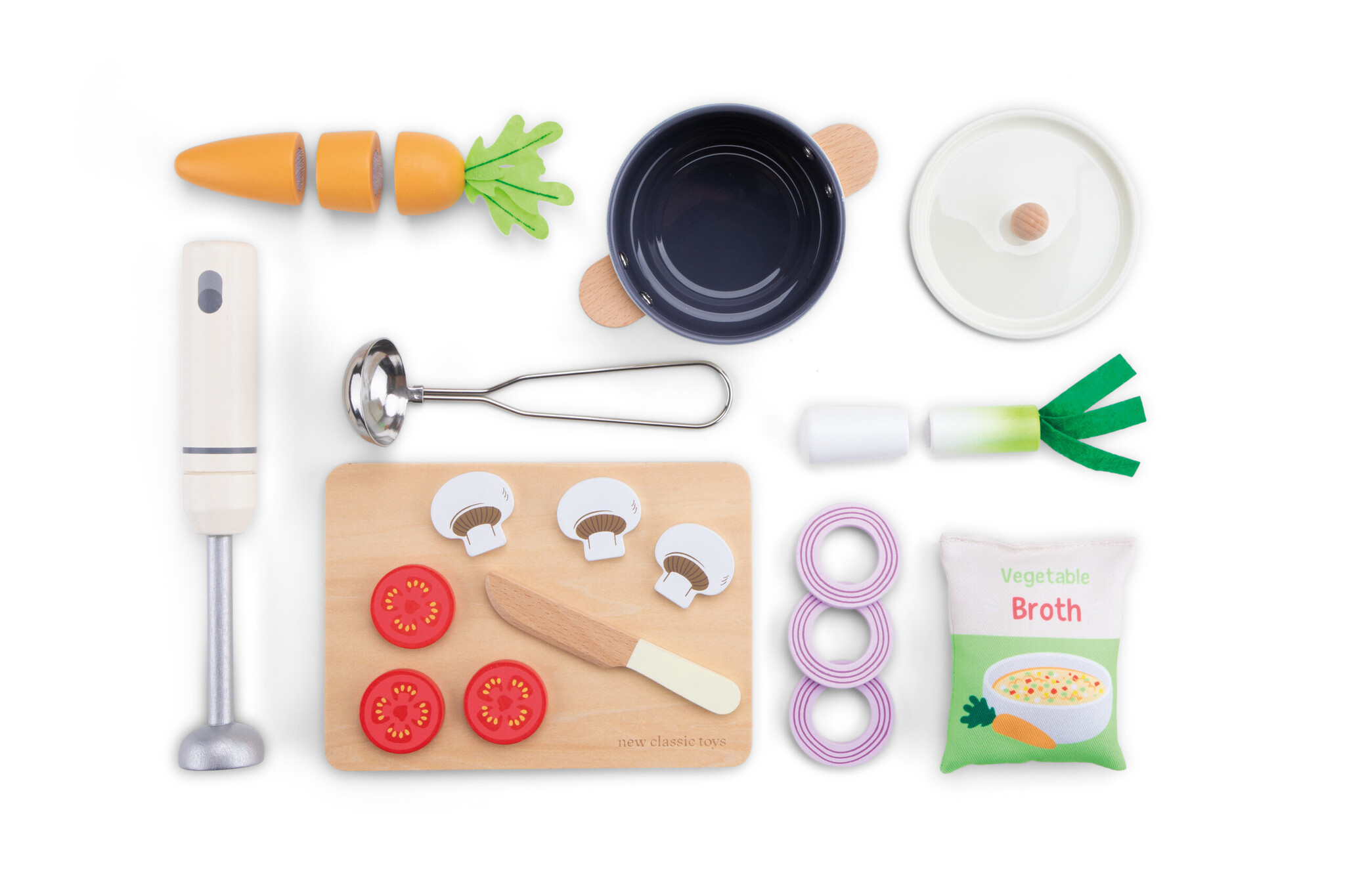 Deze uitgebreide speelset bevat alles wat je als kleine chef kok nodig hebt om de heerlijkste soepen te bereiden! De set bestaat uit veel verschillende onderdelen zoals: