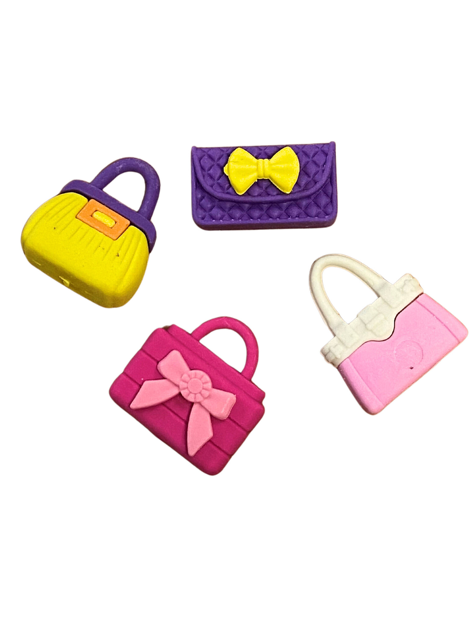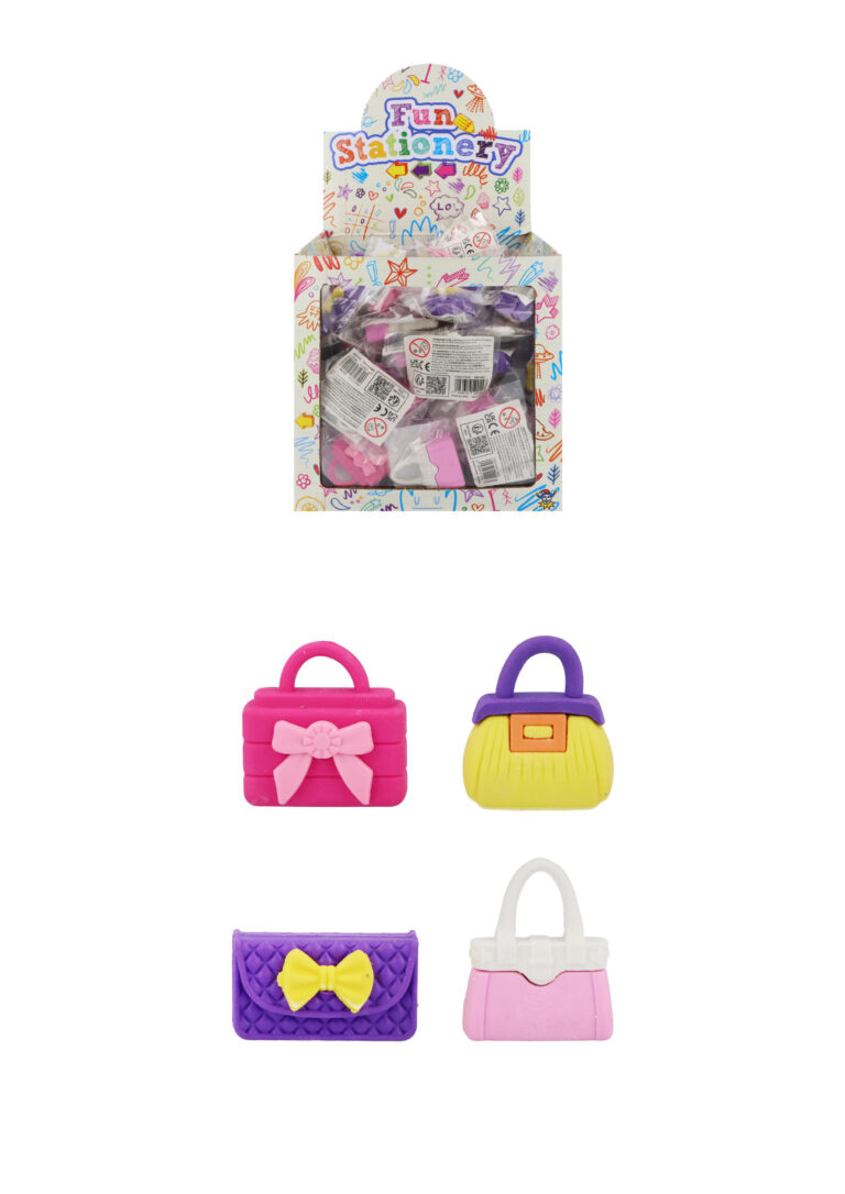 Deze schattige vlakgummetjes in de vorm van een handtasje zijn het ideale cadeautje voor kinderen! Met een afmeting van ca. 3,5 cm en beschikbaar in verschillende vrolijke kleuren, zijn ze niet alleen praktisch, maar ook ontzettend leuk om te verzamelen.