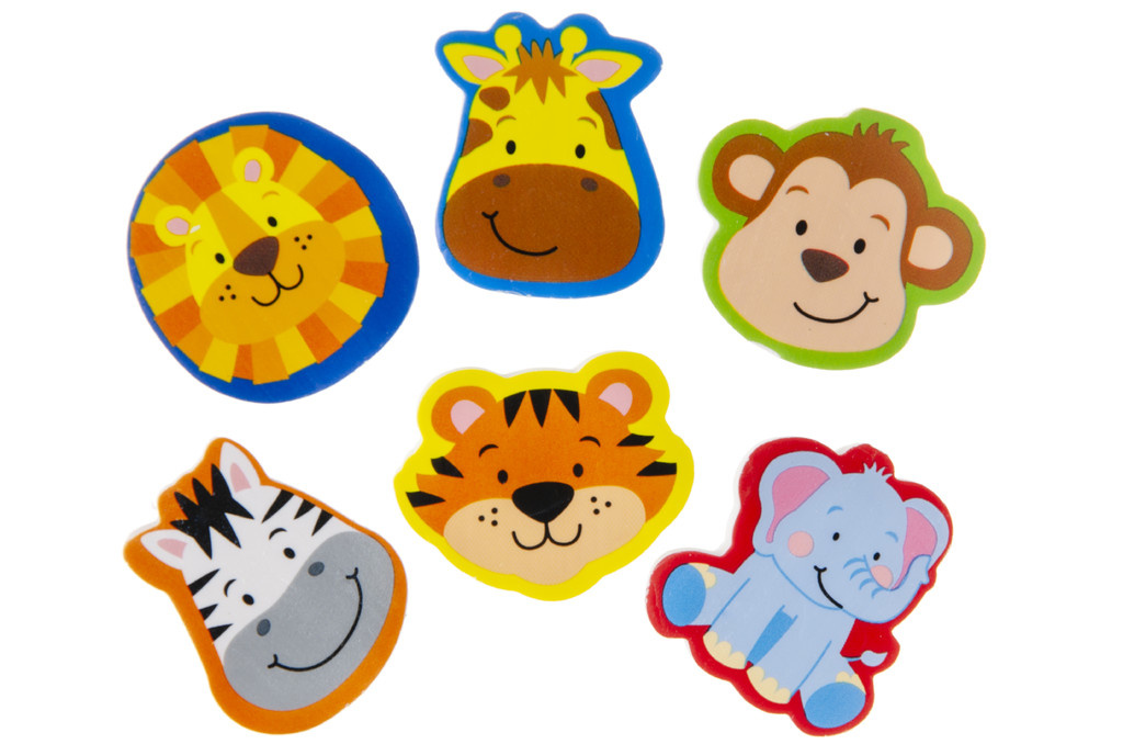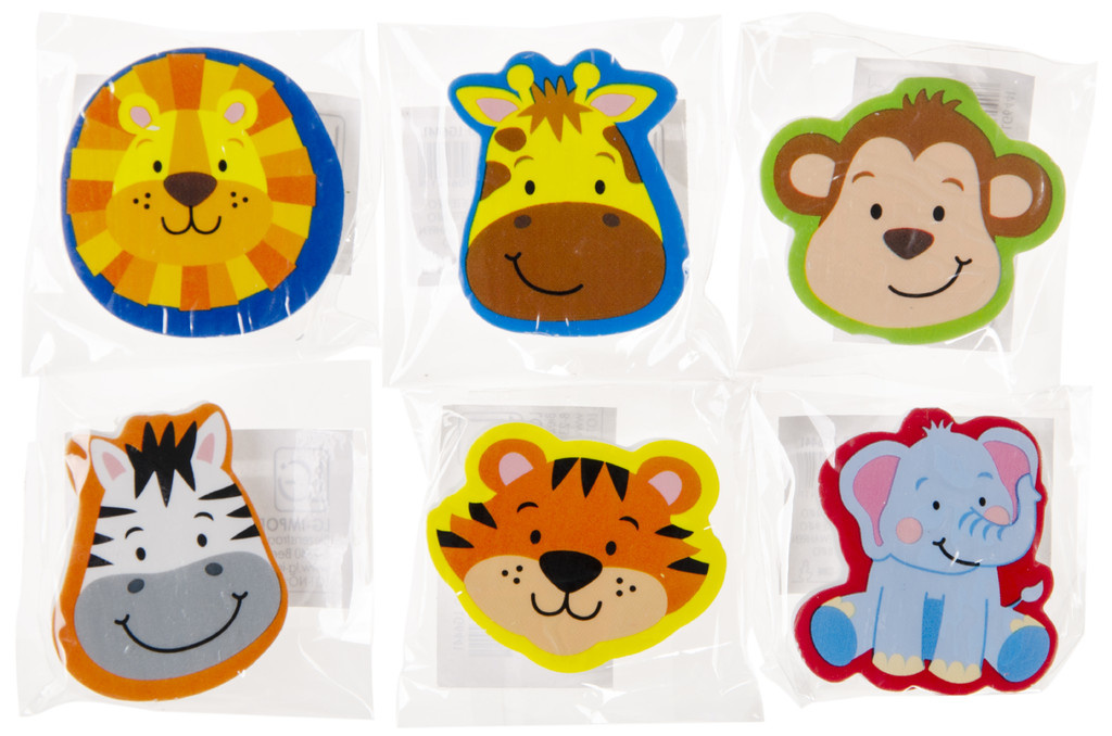 Vlakgum dier is uitgevoerd in diverse dessins en wordt assorti geleverd.
