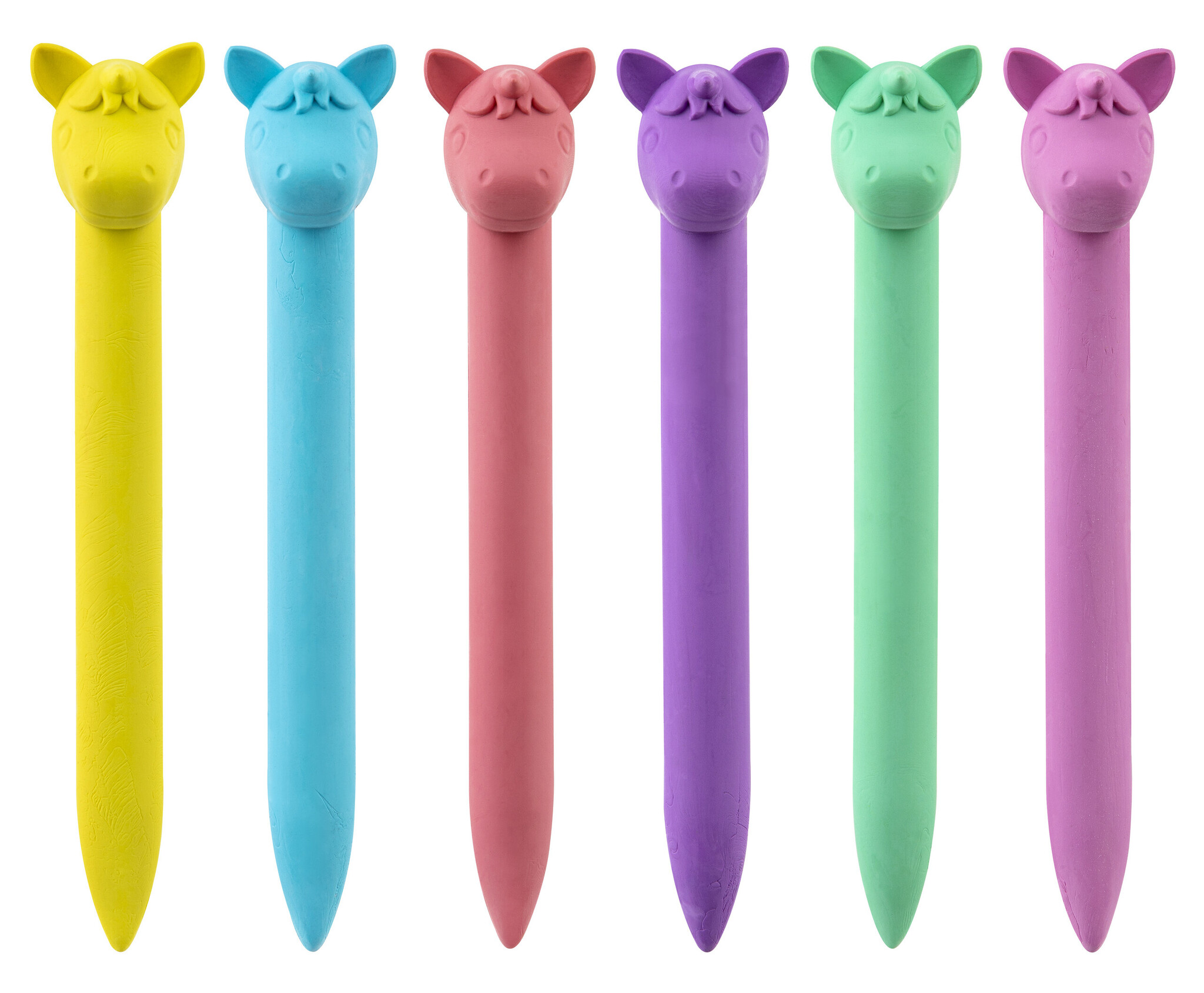 Maak kennis met onze set van 6 waskrijtjes met een speels tintje; elk krijtje heeft een vrolijk dierenhoofdje! In de verpakking zitten 6 verschillende kleurtjes en hoofdjes. Afm. verp. 20 x 14 x 2,5 cm. Geschikt vanaf 3 jaar.