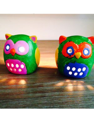 Deze waxinelichthouders in de vorm van een uiltje zijn zo leuk en gezellig! Heel eenvoudig te decoreren met ( porselein)verf of pennen. Gebruik wel een led lampje als 'kaarsje', dat is een stuk veiliger voor kinderen.
